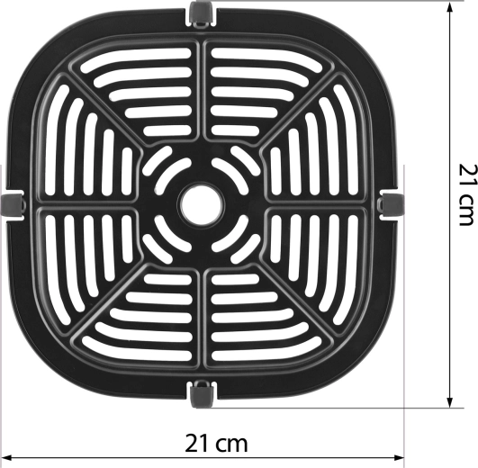 Fejlessze forrólevegős sütőjét egy strapabíró, 21 × 21 cm-es ráccsal. A PTFE tapadásmentes felületnek köszönhetően az ételek nem ragadnak le, könnyen tálalhatók, a tisztítás pedig pillanatok kérdése. A minőségi rozsdamentes acél hosszú élettartamot és stabilitást biztosít a mindennapos használat során.