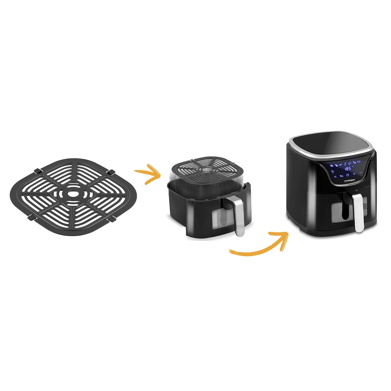 A rács tökéletesen kompatibilis a BERDSEN BD-652 modellel, így pontosan illeszkedik és egyenletes forrólevegő-áramlást biztosít a ropogós, egyenletesen átsült eredményért. Főzés után egyszerűen tegye a mosogatógépbe, és kész.