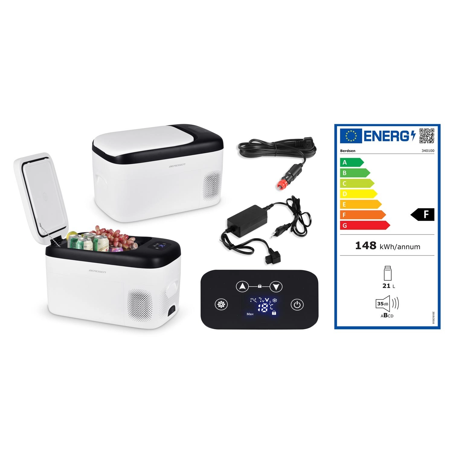 A BERDSEN Icemax 401 kompakt, 21 l-es kompresszoros autóhűtő ideális a strandra, kempingezéshez és lakóautóba. Hűtést és fűtést kínál -20 °C-tól +20 °C-ig, két üzemmódot (ECO/MAX), csendes működést 45 dB-ig, valamint digitális érintésvezérlést Gyermekzár funkcióval. 12/24 V-ról az autóban és 100–240 V-ról hálózatról egyaránt táplálható, akkumulátorvédelemmel és minőségi szigeteléssel az állandó hőmérsékletért.