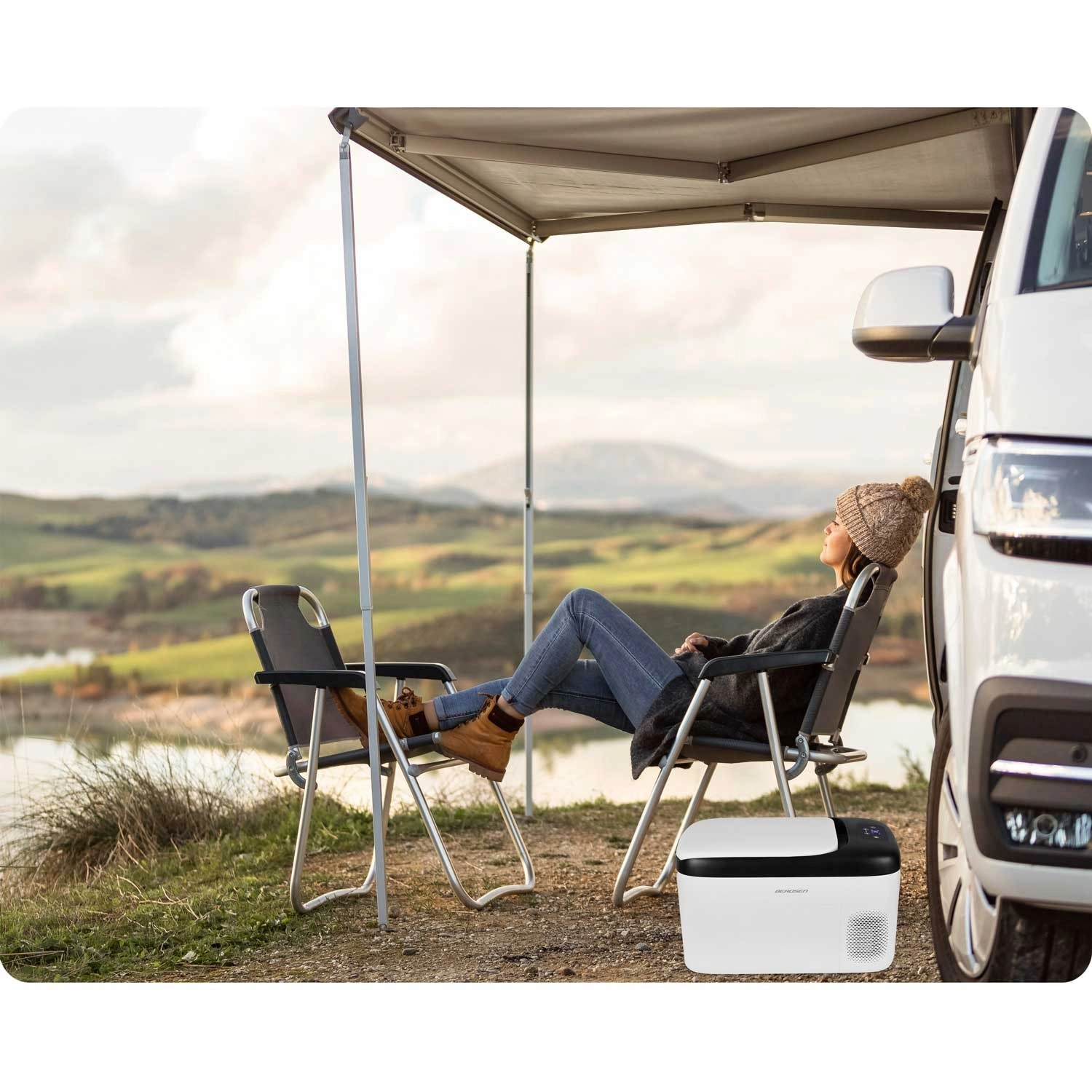 A hűtő érintőpanellel, jól látható LED kijelzővel, Gyermekzár funkcióval, 3 fokozatú gépjármű-akkumulátor védelemmel és kettős tápellátással rendelkezik: 12/24 V DC és 100–240 V AC. A minőségi habszigetelés segít tartani a beállított hőmérsékletet, a csendes, legfeljebb 45 dB-es működés pedig nem zavarja a pihenést.