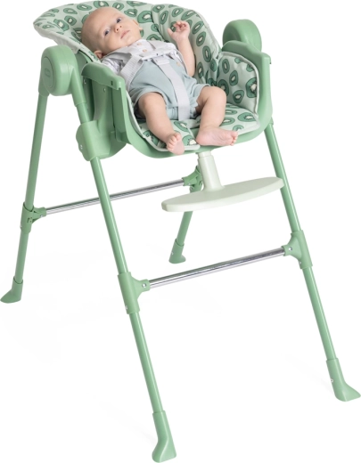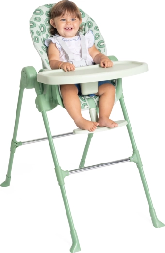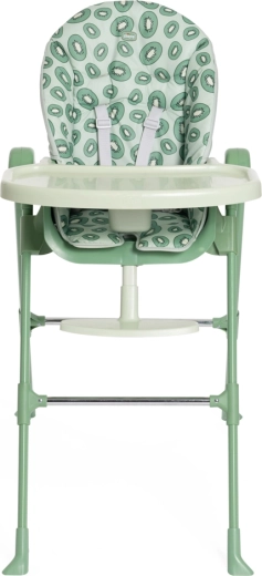 A biztonságos ülést 5 pontos hevederek és stabil, szélesen álló lábak merevítésekkel biztosítják. A levehető étkező tálca praktikus teret nyújt az etetéshez és tevékenységekhez, a huzat pedig könnyen tisztítható. Az időtálló dizájn és a friss kiwi árnyalat remekül illik bármelyik enteriőrbe.