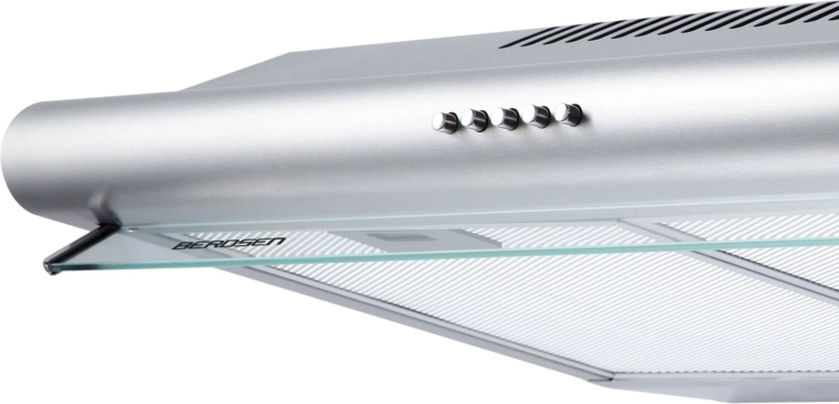 Kompakt szekrény alá szerelhető páraelszívó BERDSEN 50 cm, INOX kivitelben, elegáns dizájnnal, erős LED világítással és egyszerű mechanikus vezérléssel. 3 fokozatot kínál, működik elszívásként és keringetésként, valamint 5 rétegű alumínium szűrővel hatékonyan fogja fel a zsírt – ideális választás modern és klasszikus konyhákba is.