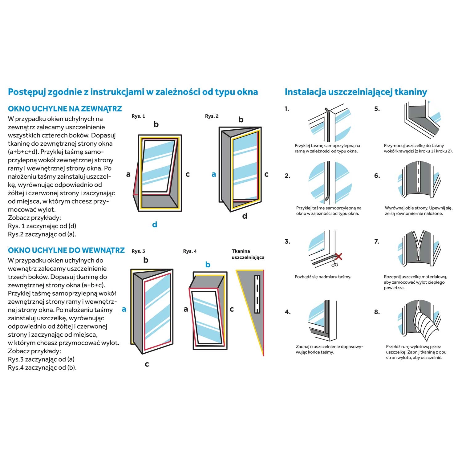 - Tömítő textil, öntapadó szalag tépőzárral, szerelési útmutató