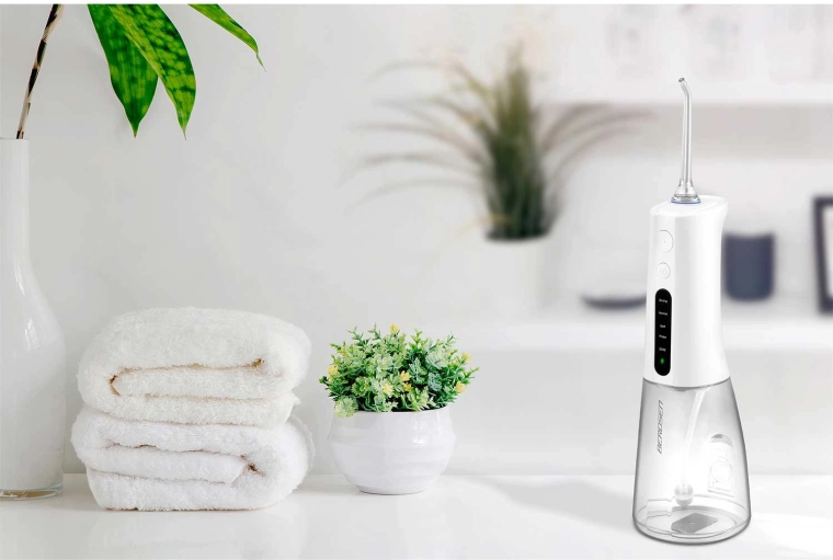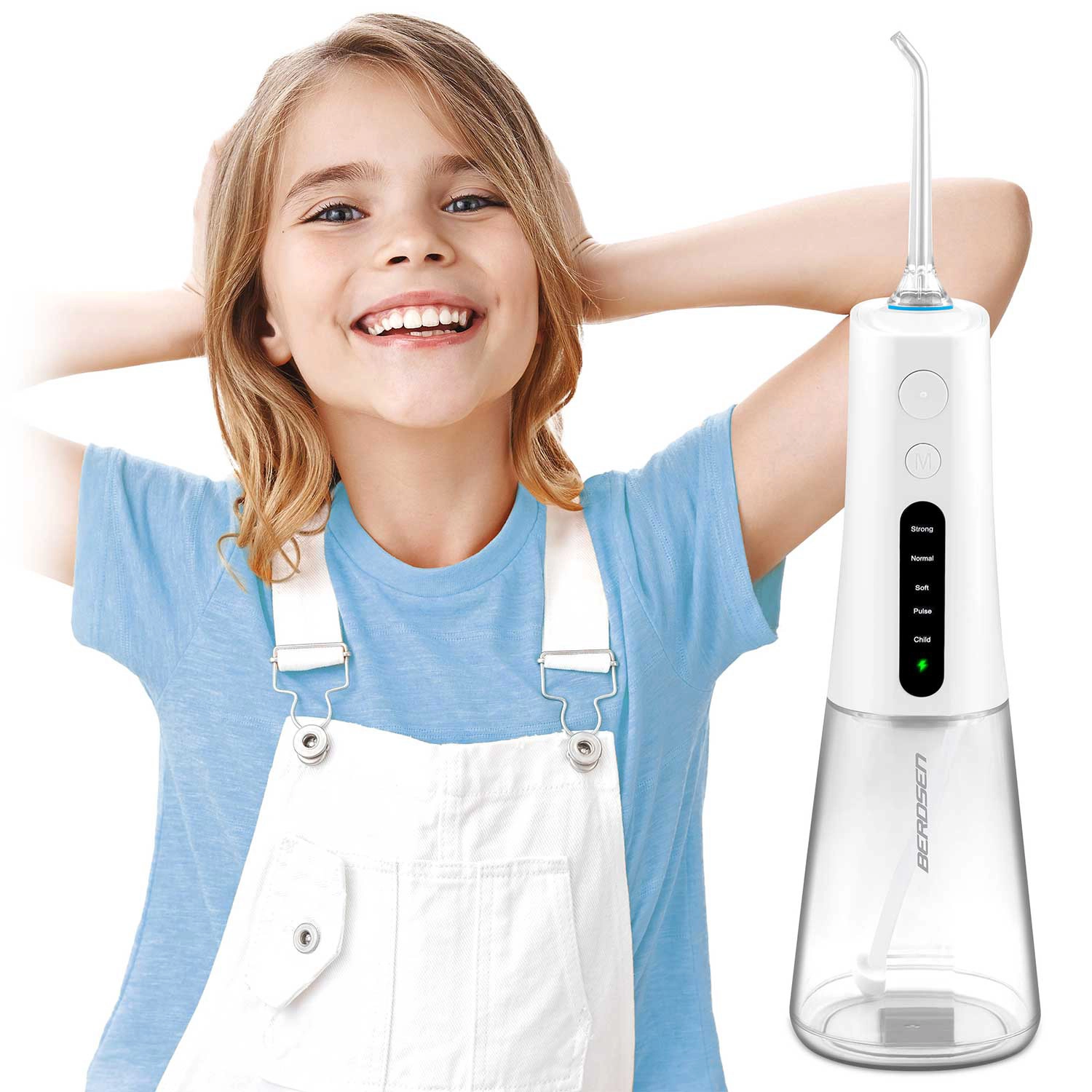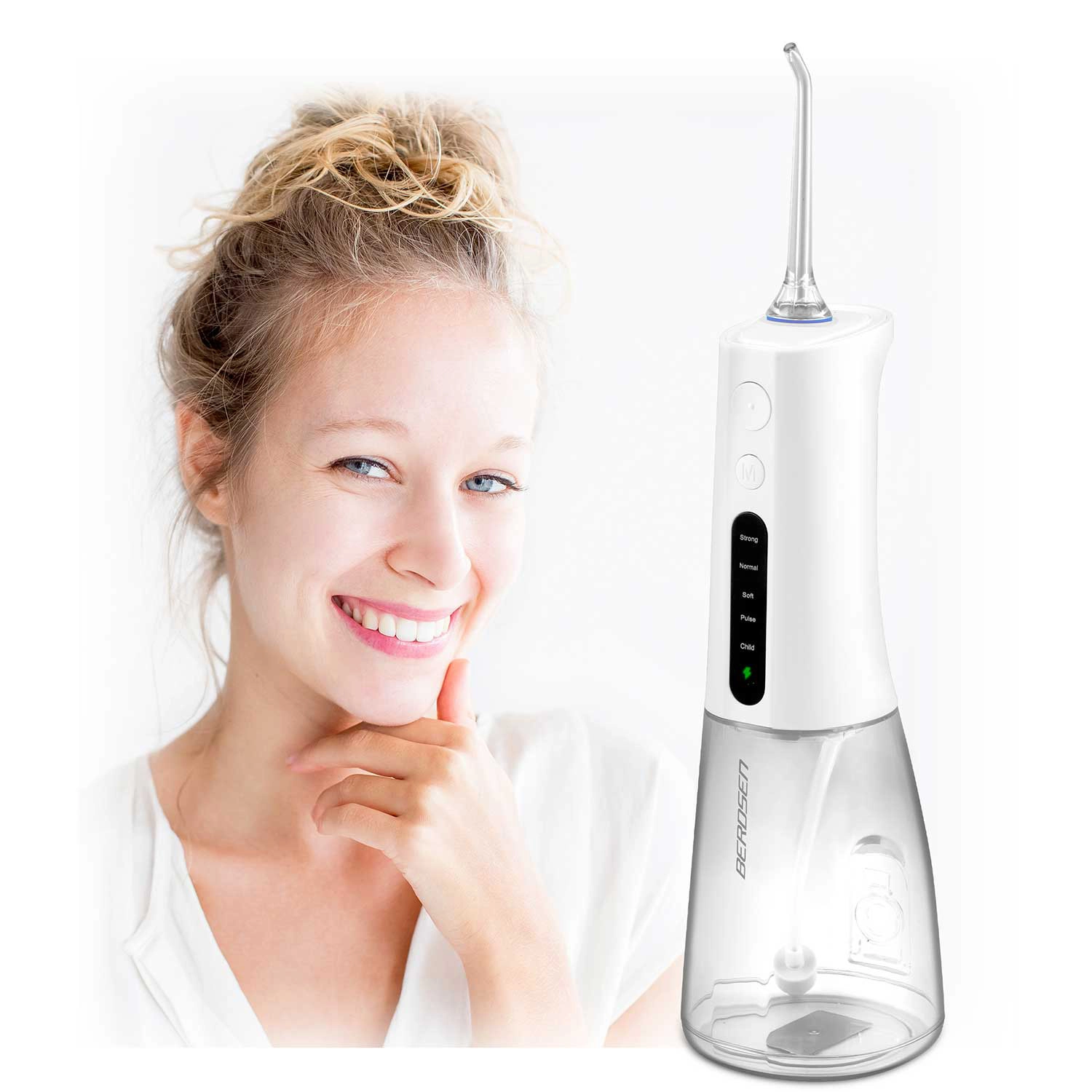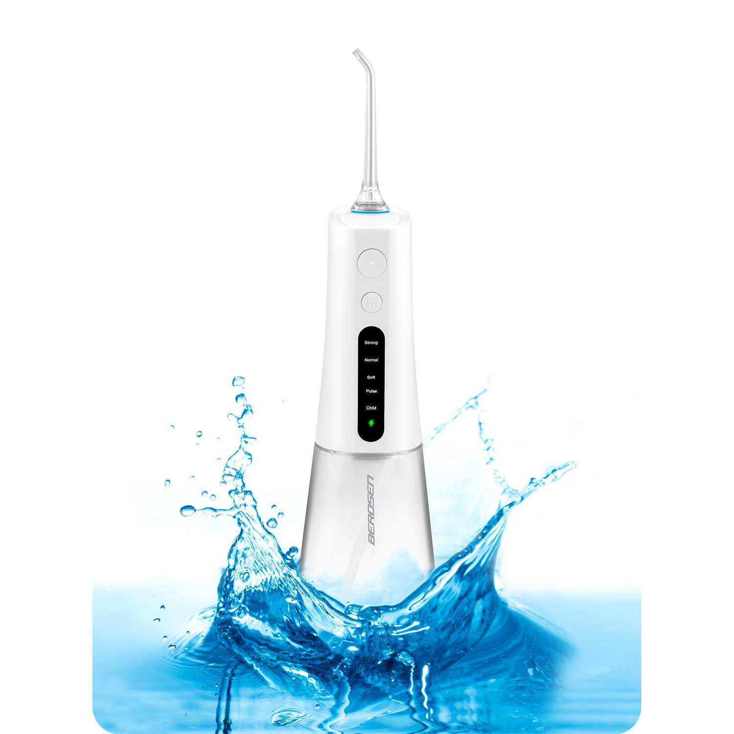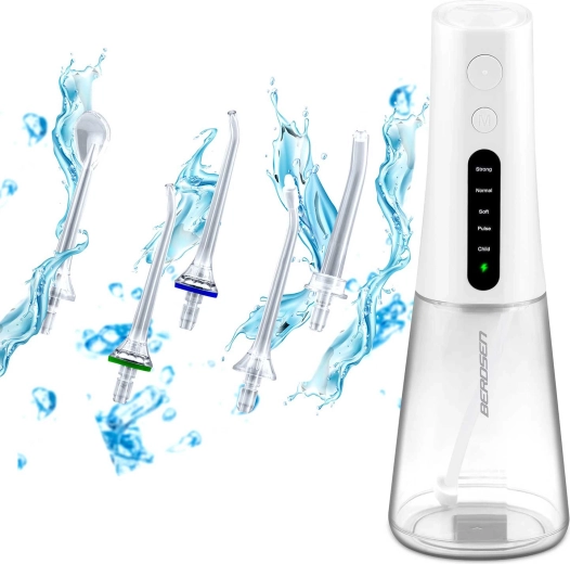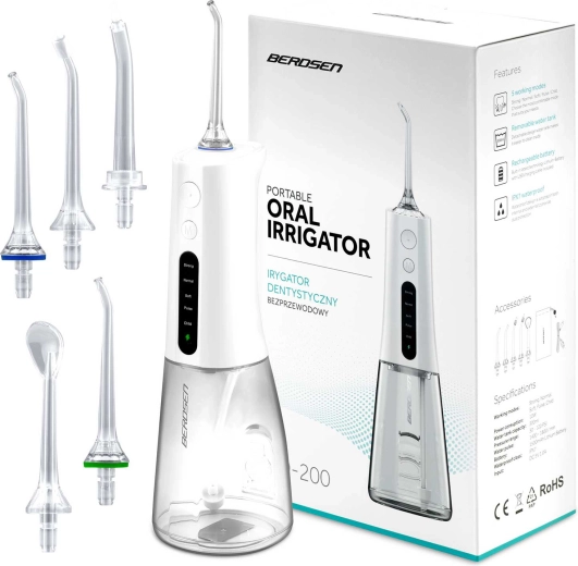 A vezeték nélküli BERDSEN szájzuhany hatékonyan távolítja el az ételmaradékokat, a lepedéket és a baktériumokat onnan is, ahova a hagyományos fogkefe nem ér el. Ideális fogközök, koronák, hidak, implantátumok és fogszabályzók tisztításához. A karcsú vízsugár, percenként akár 1800 impulzussal precíz higiéniát és egész napos friss érzetet biztosít.