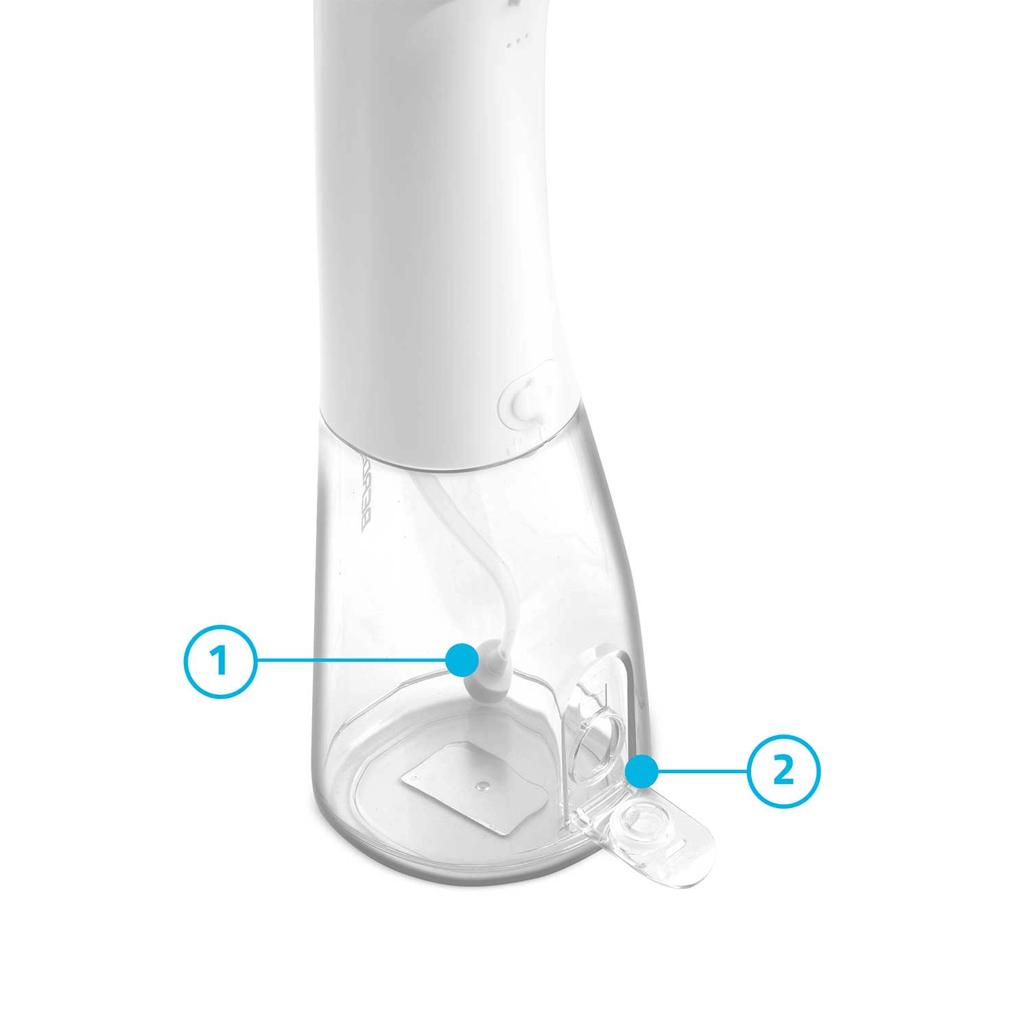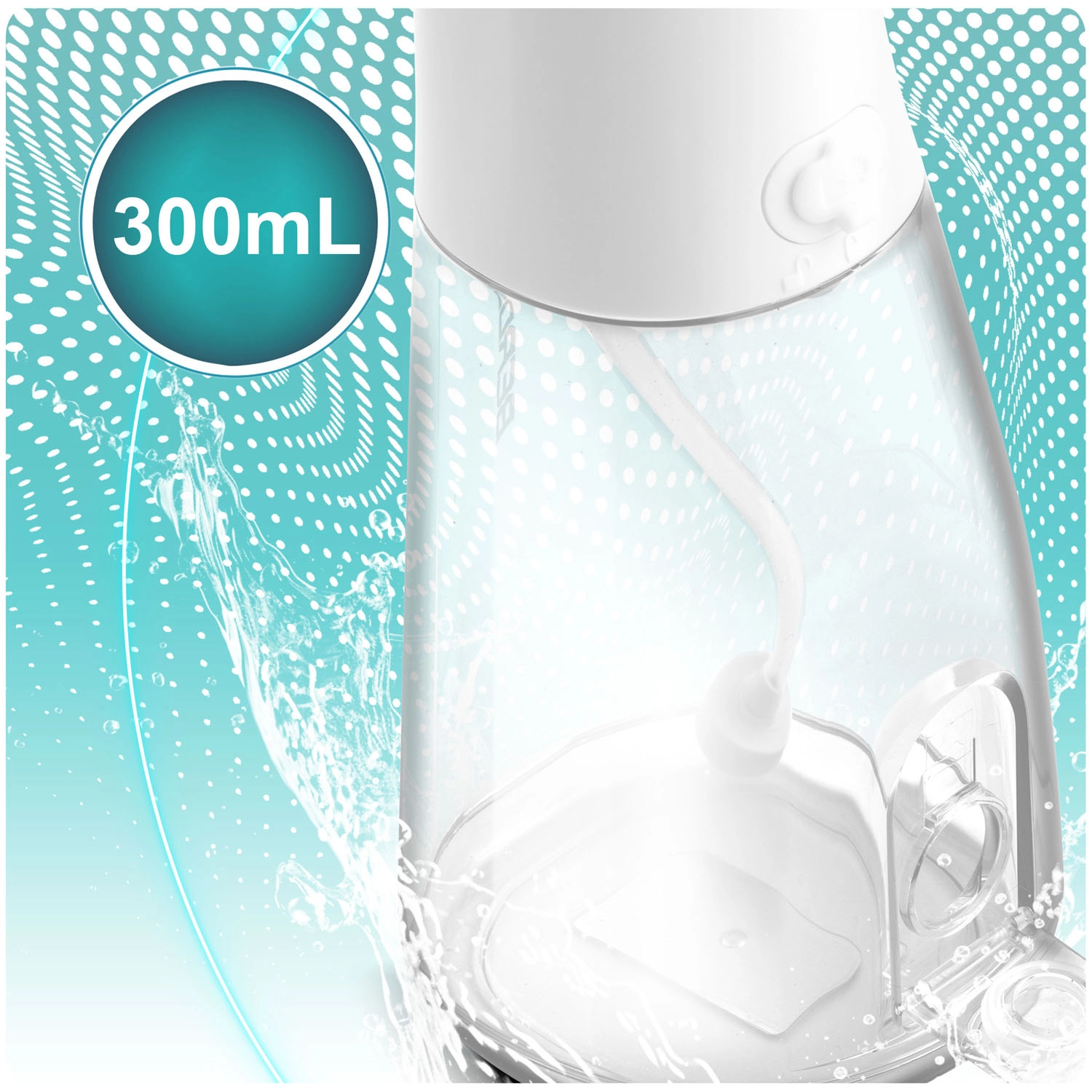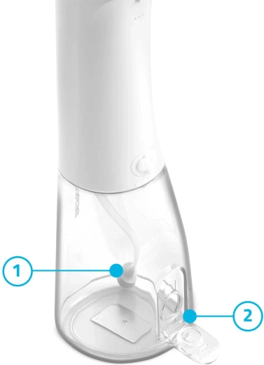 A 300 ml űrtartalom elegendő a teljes öblítéshez utántöltés nélkül. Könnyű utántöltés és átlátszó tartály a vízszint gyors ellenőrzéséhez.