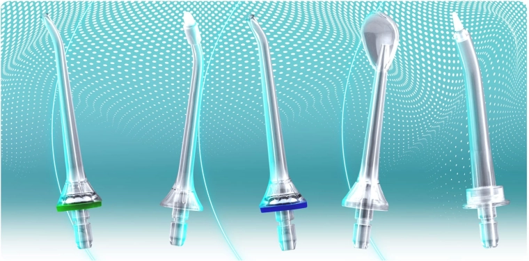 A csomagban 5 specializált fúvókát talál (2 standard, nyelvtisztító, ortodonciai és parodontális tasakokhoz való), USB‑C kábelt és praktikus tokot. A beépített akkumulátor egyetlen töltéssel akár 3–4 hétig is kitart, így mindig kéznél van a ragyogó mosoly.