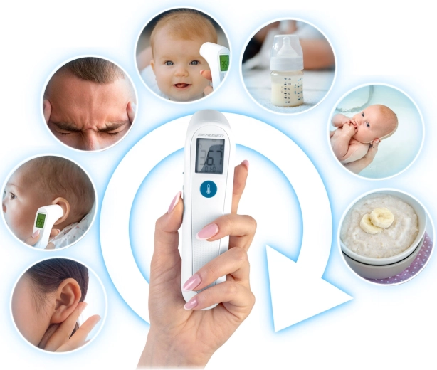 Könnyen válthat a testhőmérséklet és a felületi hőmérséklet mérése között – például cumisüvegben lévő tej, fürdővíz vagy ételek esetén.