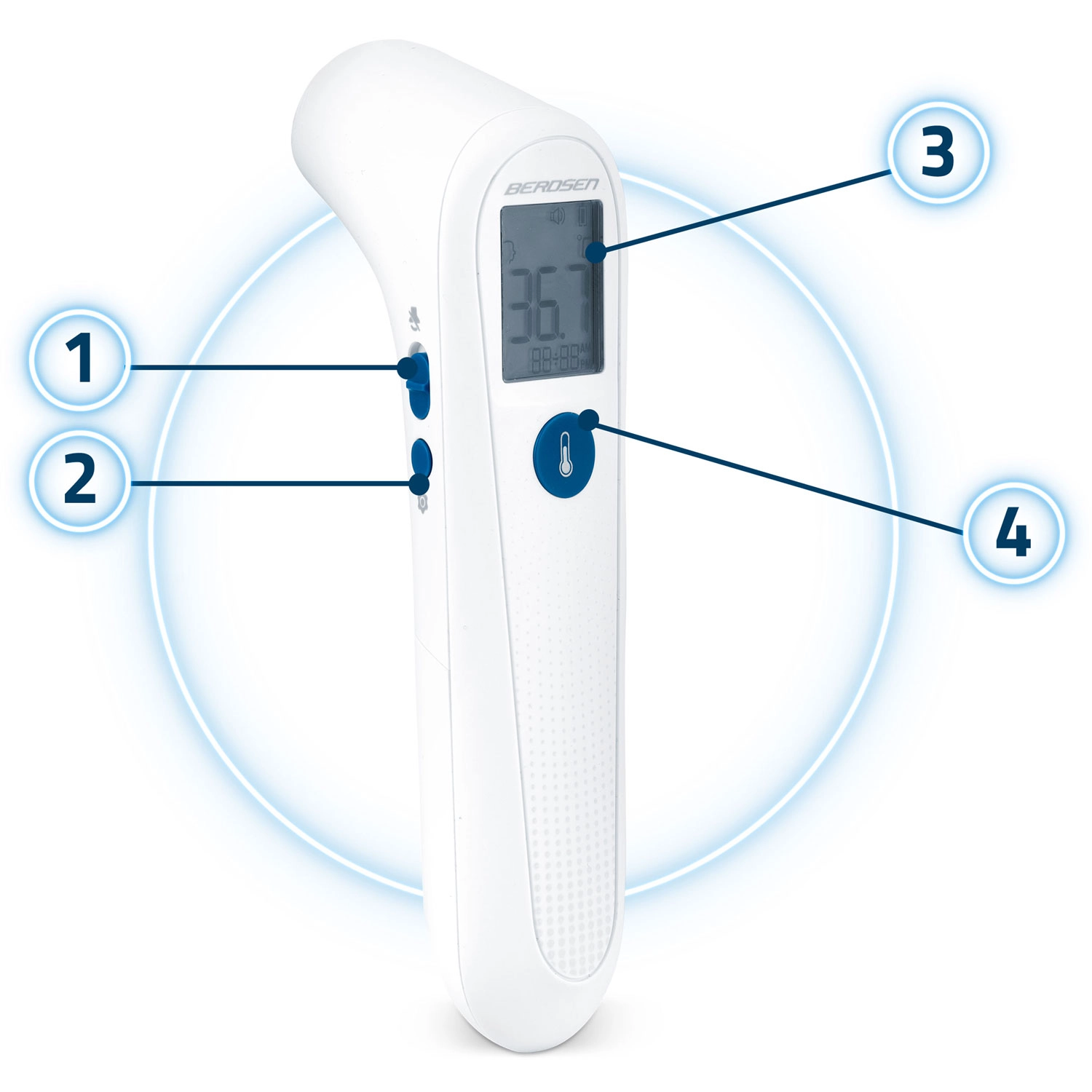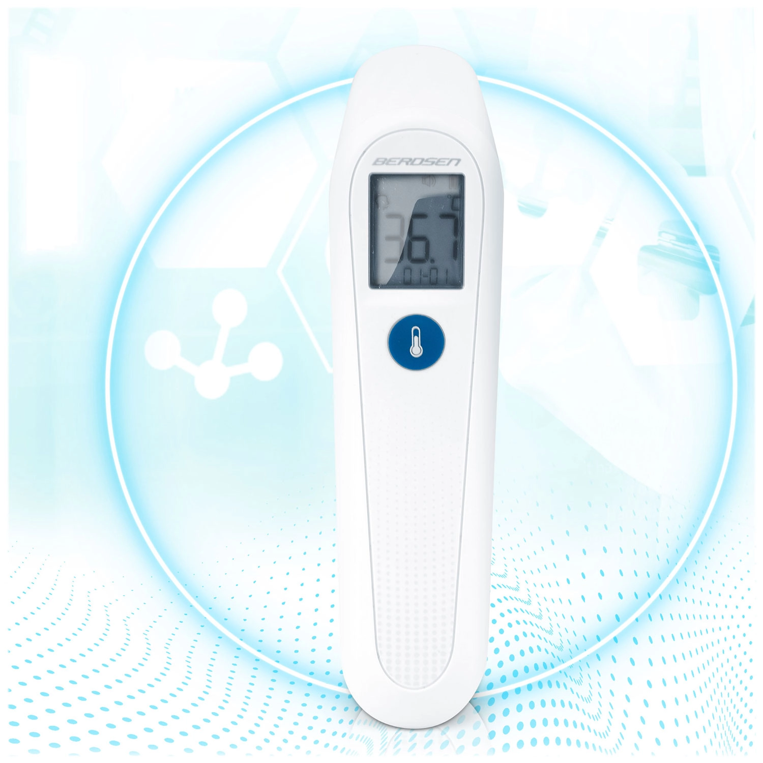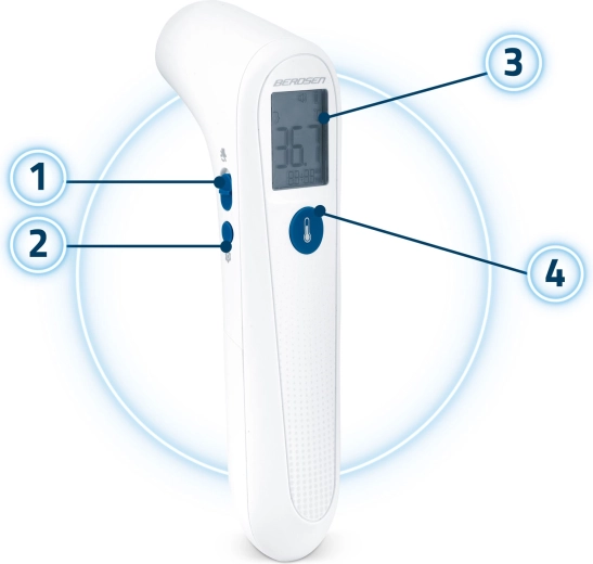 A Berdsen BD-101 érintésmentes infravörös hőmérő megbízható segítőtárs a test- és felületi hőmérséklet gyors és pontos ellenőrzéséhez. A kb. 1 s alatt történő azonnali mérésnek és az érintésmentes működésnek köszönhetően ideális gyermekeknek, időseknek és éjszakai, felébresztés nélküli méréshez. A 3 színű háttérvilágítású LCD segít gyorsan felismerni a normál értéket, a hőemelkedést és a lázat.