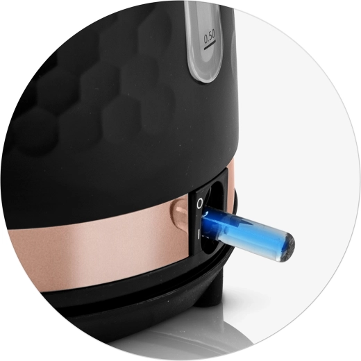 Praktikus részletek, mint a 360°-ban forgatható talp jobb- és balkezeseknek, a világító kapcsoló és a vízszintjelző teszik a kezelést magától értetődővé. A kivehető fém szűrő felfogja a vízkövet, így a tea és a kávé íze tiszta marad. A szárazonfutás elleni védelem és a stabil csúszásmentes lábak növelik a biztonságot.