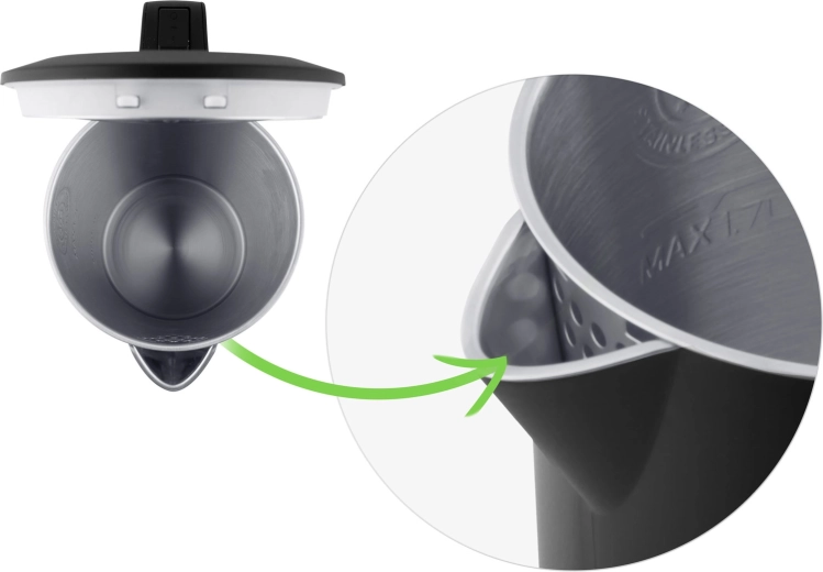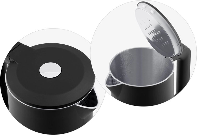 A vízforralót a kényelem jegyében tervezték: 360 forgatható talp jobb- és balkezeseknek, kivehető szűrő a tiszta kiöntéshez, valamint automatikus szárazonfutás elleni védelem a maximális biztonságért. Az elegáns LED háttérvilágítás egyértelműen jelzi a működést, a kábelt pedig könnyen elrejtheti az integrált rekeszben.