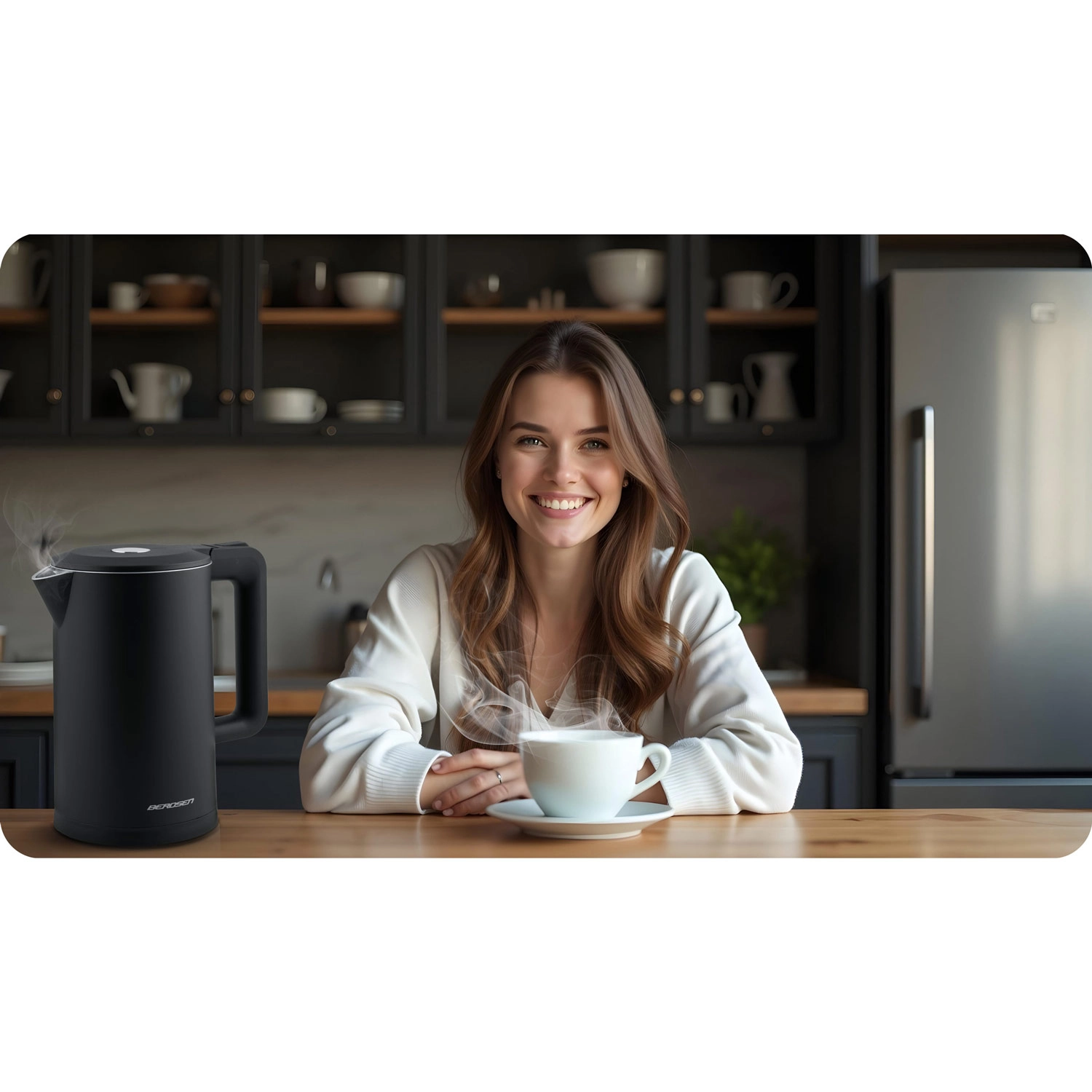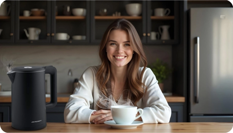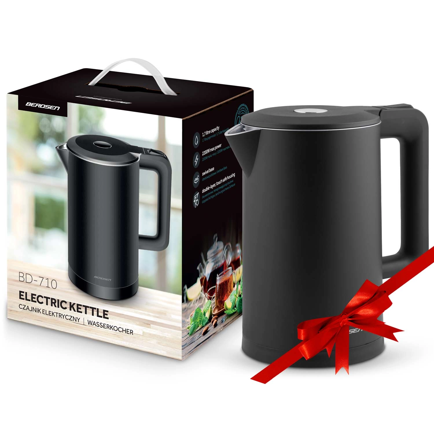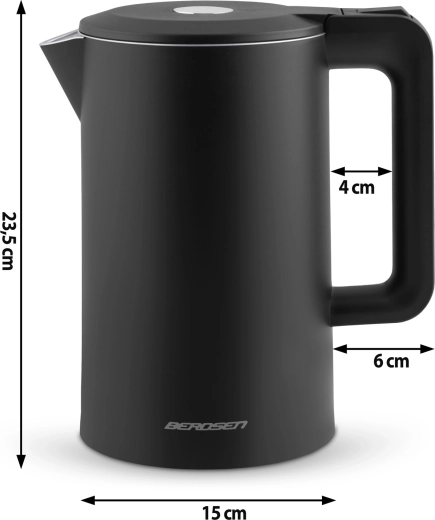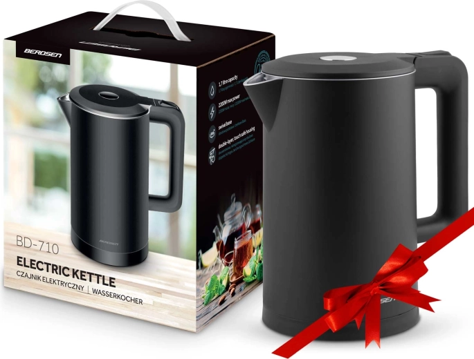 A stílusos BERDSEN elektromos vízforraló 1,7 l űrtartalommal kombinálja a SUS304 rozsdamentes acélt a tiszta vízízhatásért és az izolált CoolTouch felépítést az égési sérülések nélküli biztonságos használatért. 1850–2200 W teljesítményt kínál a gyors forraláshoz, 360 forgatható talpat, világító LED csíkot, valamint átgondolt részleteket, mint a kábelrekesz és a csúszásgátló lábak.
