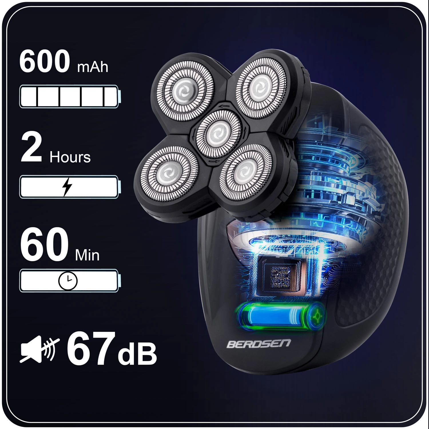Univerzális 5 az 1-ben borotva- és trimmelőkészlet a mindennapi szakáll- és hajápoláshoz. Kínál nagy teljesítményű motort, LCD kijelzőt akkumulátor- és fordulatszám‑jelzővel, acél, dupla élű pengéket a precíz vágáshoz húzás nélkül, 5 funkcionális fejet + 3 fésűs feltétet, 600 mAh‑s Li‑Ion akkumulátort akár 60 perc üzemidővel és gyors USB‑C töltést 2 óra alatt. A IPX7 vízállóság megkönnyíti a tisztítást és a zuhany alatti borotválkozást.