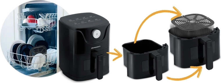 - Könnyű karbantartás: kivehető kosár, mosogatógépben mosható részek