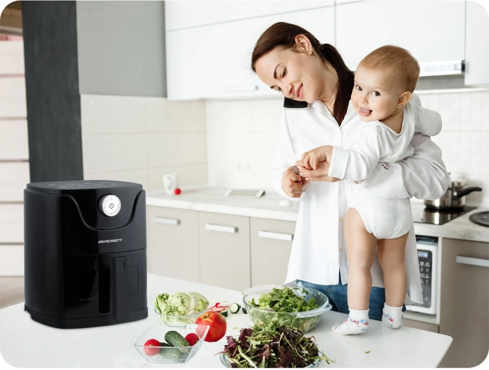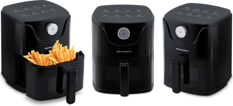 A BERDSEN BD-654 sokoldalú forrólevegős sütő, amely süt, főz, grillez és aszal – mindezt egy kompakt készülékben. Élvezze az aranyszínűen ropogós külsőt és a szaftos belsőt minimális olajjal. Ideális gyors vacsorákhoz, mozizós estékhez és egészséges ebédekhez felesleges kalóriák nélkül.