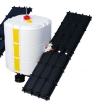 A műhold konstrukciójában szereplő napelemek bemutatják az energia megszerzését az űrben.