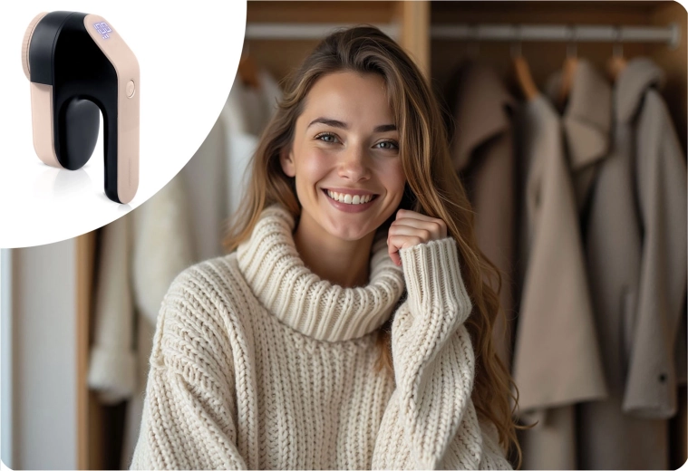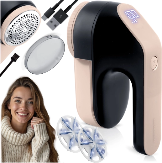 Az ergonomikus forma kényelmes fogást ad, a nagyméretű szöszgyűjtő tartály megkönnyíti a tisztítást, a védőkupak profilozott rácsa pedig megóvja a szöveteket a beakadástól. A 2000 mAh-s újratölthető akkumulátornak köszönhetően a készülék körülbelül akár 3 órán át működik, töltése modern USB‑C kábellel történik – ideális az otthoni ruházatápoláshoz és utazáshoz.