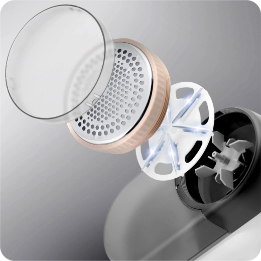 Tartós, rozsdamentes acél pengéi hatékonyan távolítják el a szöszöket és bolyhokat, miközben a formázott védőrács óvja a szálakat a kihúzódástól.