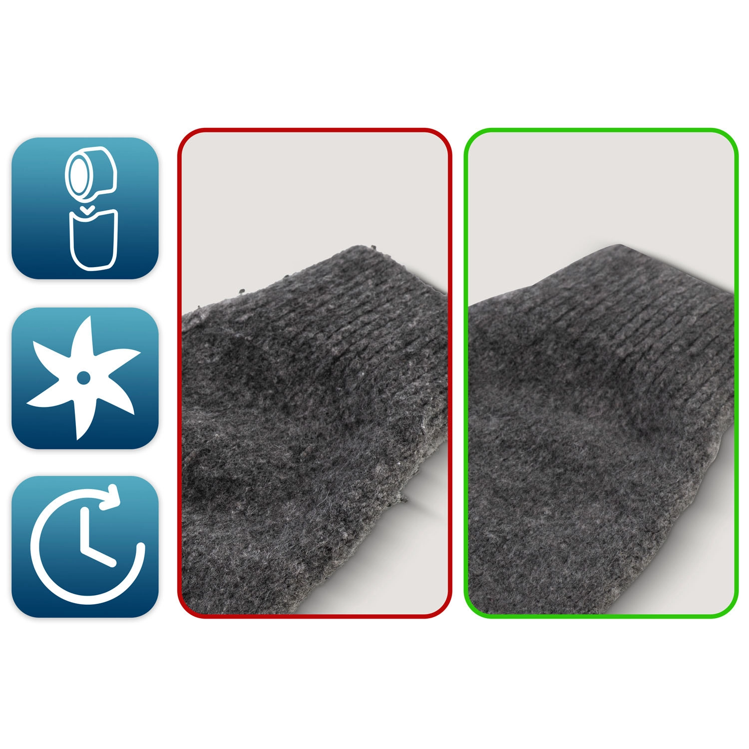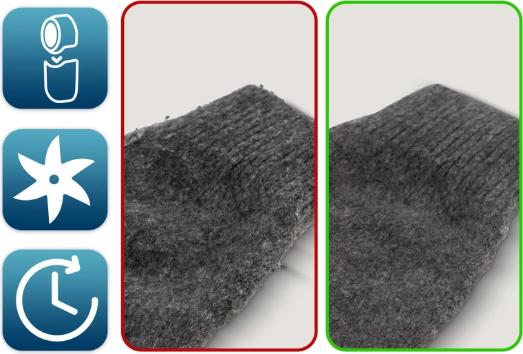Az éles rozsdamentes acél pengék megbirkóznak a bolyhokkal, göbökkel és kiálló szálakkal, a szövetet simává és ápolttá téve.