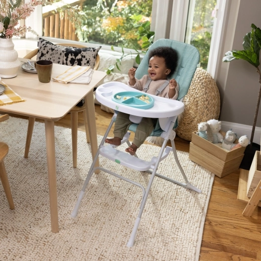 Az INGENUITY Sun Valley okos választás a mindennapi etetéshez és az első önálló próbálkozásokhoz az asztalnál. Az etetőszék pillanatok alatt laposra csukható, és összecsukva önállóan megáll, így könnyen tárolható és hordozható. A puha kárpit géppel mosható, a nagy tálca 3 fokozatban állítható, és helytakarékosan a háttámlához rögzíthető.