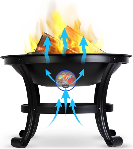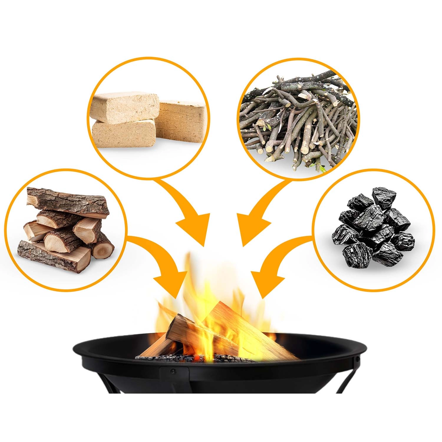 Fával, brikettel, gallyakkal vagy faszénnel is használható. Az alsó nyílás és az optimális tálmélység támogatja a gyors gyújtást és az egyenletes égést.