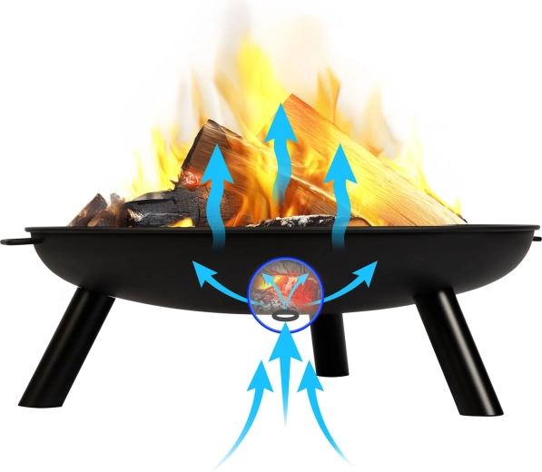 Az optimális tálmélység és az alján lévő szellőzőnyílás kiváló légcserét biztosít a gyors lángra kapáshoz és a stabil lánghoz.
