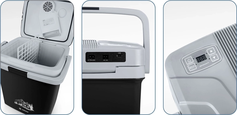 Élvezze a kirándulásokat, a strandolást és a kempingezést a 26 literes, praktikus autóhűtővel, amely ECO üzemmódot, hőmérséklet-beállítást, elektronikus kijelzőt és duális 12 V / 230 V tápellátást kínál. A kettős falú kialakításnak és az aktív hűtésnek köszönhetően a tartalmat akár 18 °C-kal a környezeti hőmérséklet alá hűti, és melegíteni is tud akár 65 °C-ig. A könnyű szerkezet, a összecsukható fogantyú, a biztonsági fedélzár és a praktikus válaszfal kényelmes és biztonságos használatot biztosít otthon és útközben is.
