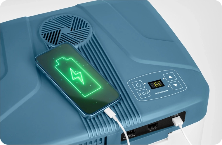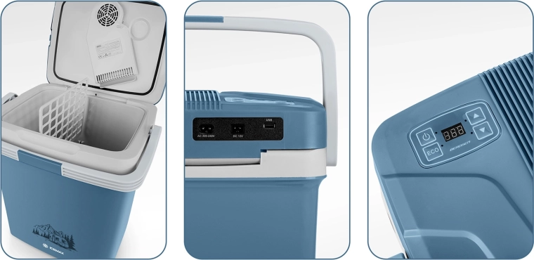 Könnyű és kompakt autóhűtő 26 literes űrtartalommal, digitális hőmérséklet-szabályozással, két ECO/Normál móddal és akár 18 °C-kal a környezeti hőmérséklet alá hűtő funkcióval. A 12 V-os és 230 V-os tápellátásnak, a csendes működésnek és a USB kimenetnek köszönhetően ideális autós utakhoz, strandra és kempingezéshez.