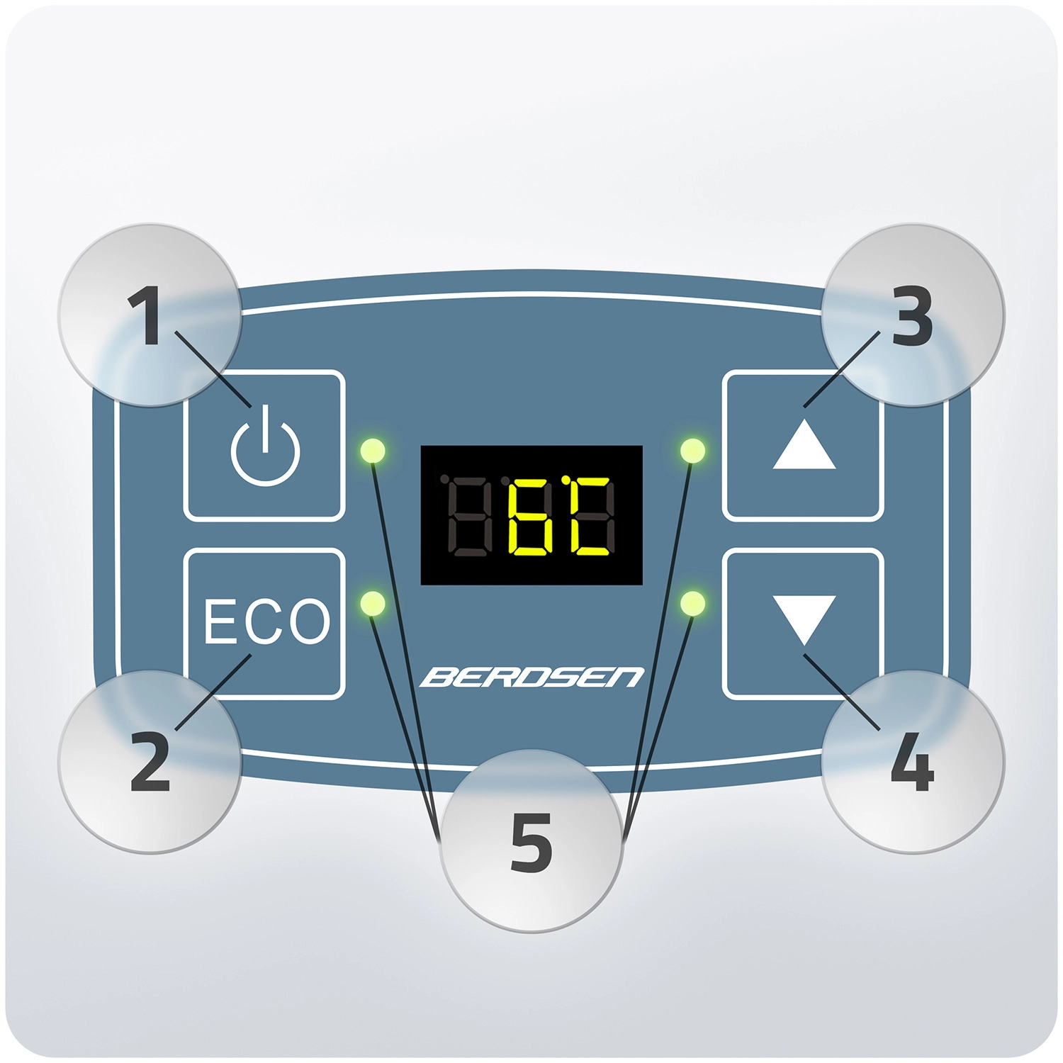 Állítsa be a hőmérsékletet pontosan igényei szerint, és takarékoskodjon az energiával. A kijelző mutatja az aktuális állapotot, az ECO mód csökkenti a fogyasztást és tartja a beállított hőmérsékletet.
