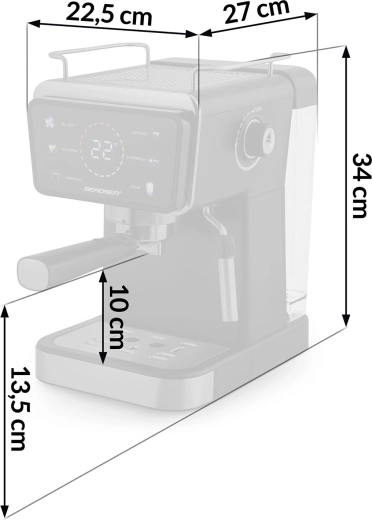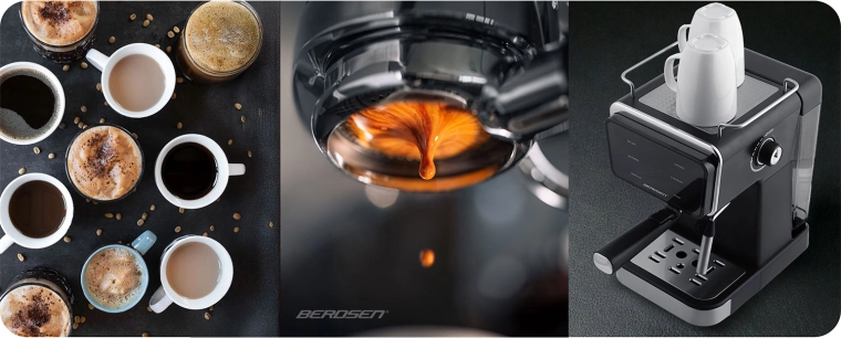 Élvezze az otthoni kávét, mintha kávézóban lenne, a Berdsen karos kávéfőzővel. 20 bar nyomást kínál a gazdag cremáért, erőteljes 1350 W a gyors felfűtéshez, érintésvezérlés a gondtalan használathoz és professzionális gőzkar a selymes tejhabhoz. A 1,5 l-es víztartálynak köszönhetően több csészét készíthet utántöltés nélkül, a Cold Espresso funkcióval pedig frissítő kávét élvezhet a forró napokon is.