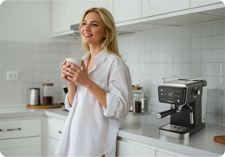 A nagy teljesítményű pumpa és a precíz hőfokszabályzás a darált kávéból a lehető legtöbb ízt és aromát hozza ki – kávézói szintű, gazdag cremával.