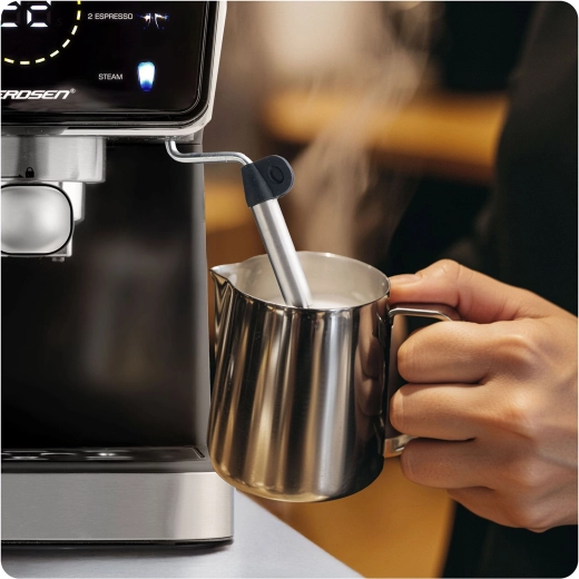 A rozsdamentes acél gőzkar sűrű, bársonyos habot készít cappuccinóhoz, lattéhoz és flat white-hoz. Leszerelhető kialakítás az egyszerű tisztításért.