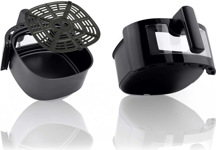 Több mint egy fritőz: süt, grillez, melegít és aszal. Kiváltja a hagyományos fritőzt, a sütőt, a pirítót/melegszendvicssütőt, az elektromos grillt és az aszalót. A tapadásmentes rozsdamentes betét PTFE felülettel könnyen tisztítható, az alkatrészek mosogatógépben moshatók.