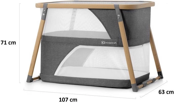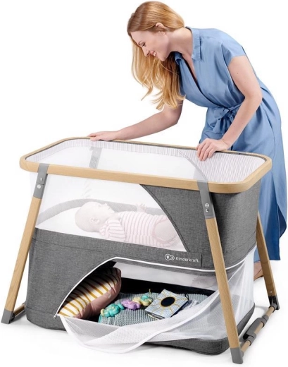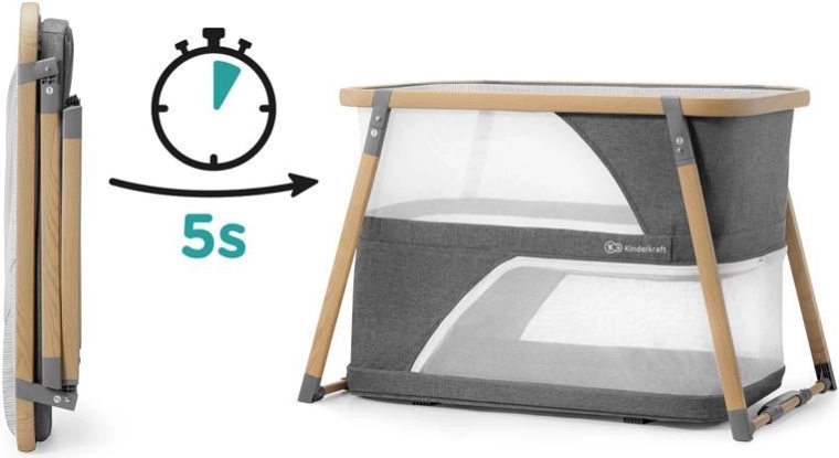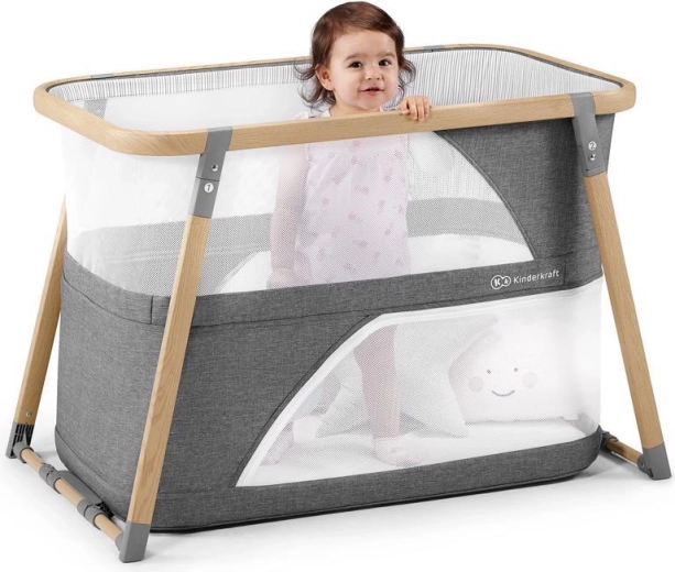 A multifunkciós 4 az 1-ben KINDERKRAFT Sofi elegáns szürke színben ötvözi a kiságyat, a utazóágyat, a járókát és a ringatót. Villámgyors, 5 másodperces összecsukás, könnyű alumínium váz fahatású dekorral, légáteresztő hálós oldalak és minőségi habmatrac a biztonságos, kényelmes alváshoz és játékhoz otthon és útközben.