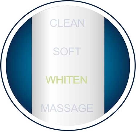 Tisztítás, Fehérítés, Gyengéd és Masszázs: válassza a megfelelő beállítást a mindennapi higiénához, az érzékeny fogakhoz, a zománcfényesítéshez és az íny stimulálásához.