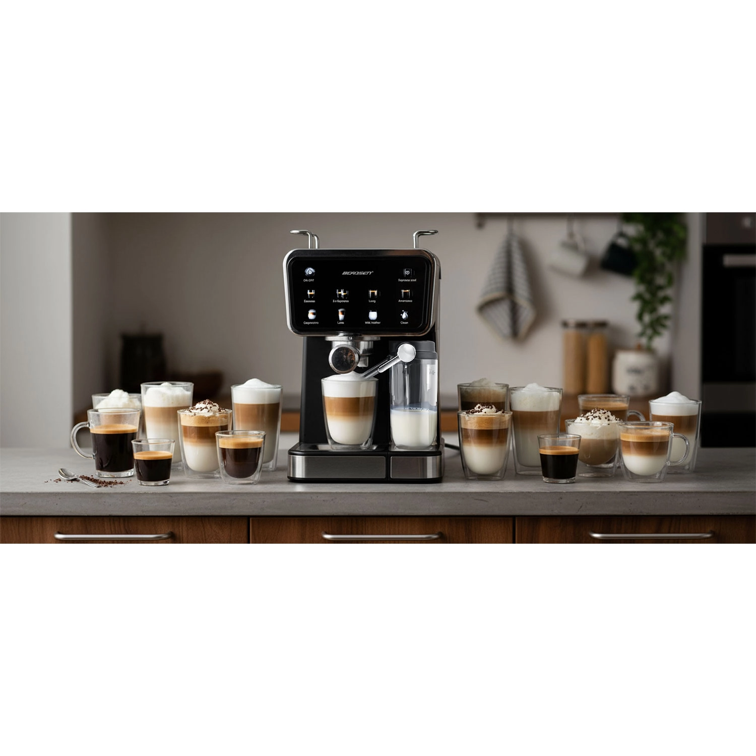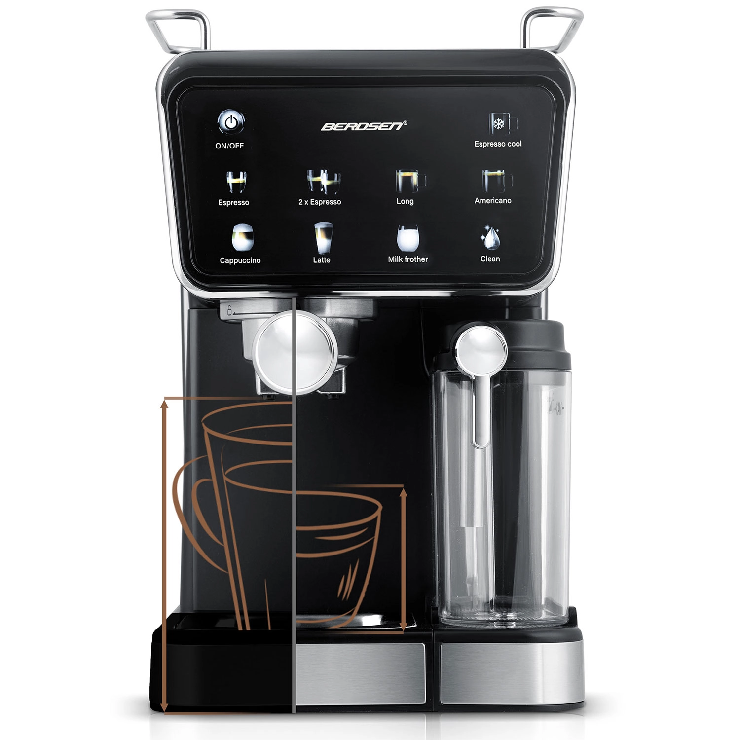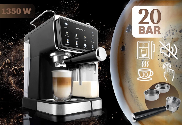 Élvezze a kávézóminőséget otthon a BERDSEN BD-773 karos eszpresszógéppel, 20 bar nyomással, érintésvezérléssel és beépített tejhabosítóval. Készítsen espressót, cappuccinót, lattét és americanót pontosan ízlése szerint, beleértve a hideg espresso funkciót forró napokra. Levehető 1,5 l-es víztartály és 0,5 l-es tejtartály, halk működés és automatikus tisztítóprogram az egyszerű karbantartásért.