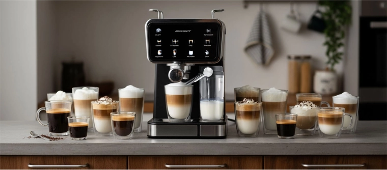 - Espresso, cappuccino, latte, americano, Cool/Cold espresso, gőzszabályozás