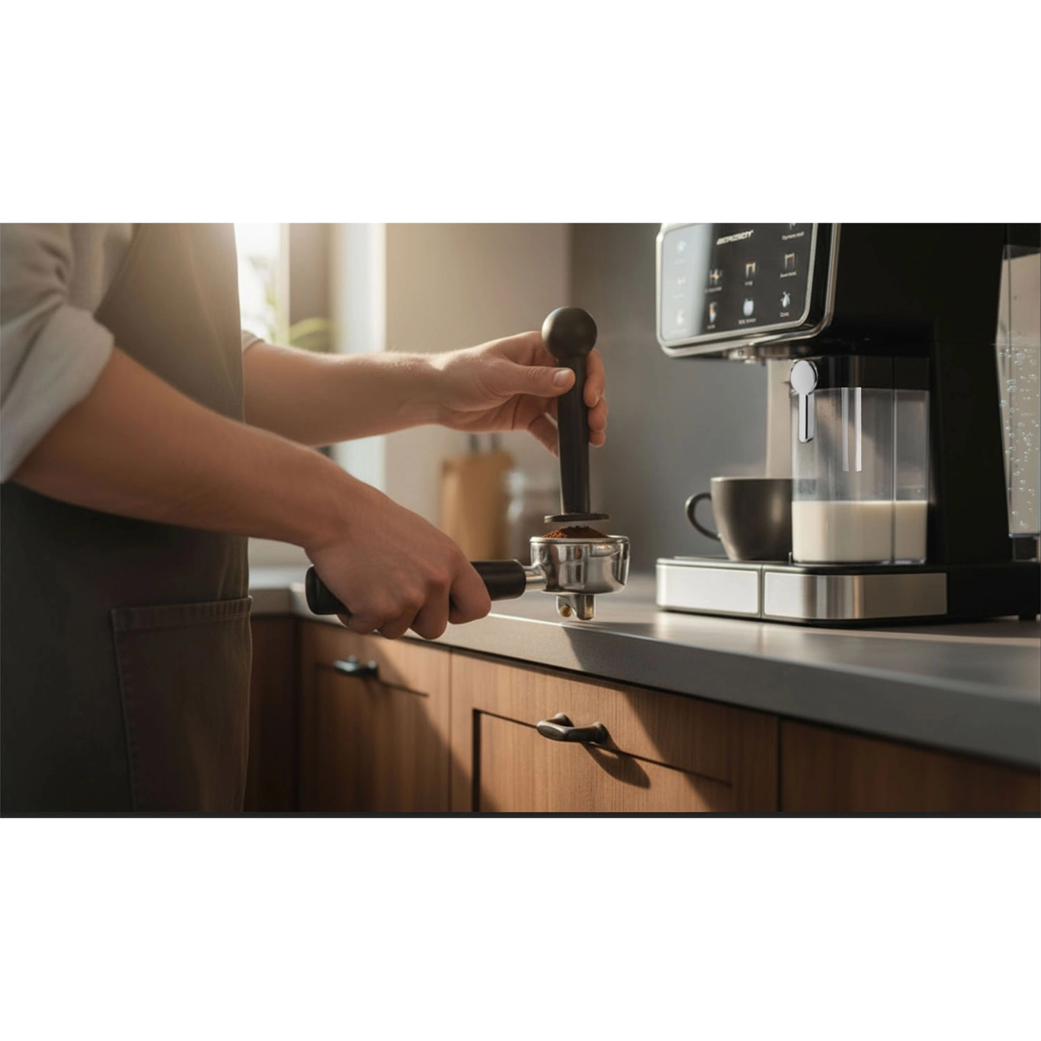 - 2 az 1-ben adagoló tamperrel, dupla kifolyós kar