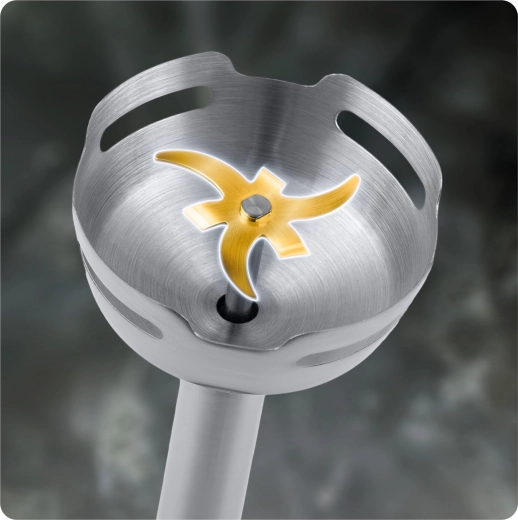 A rendkívül ellenálló titán penge a kemény alapanyagokkal is megbirkózik, ugyanakkor könnyen tisztítható. Sima eredmények gyorsabban és kevesebb erőfeszítéssel.