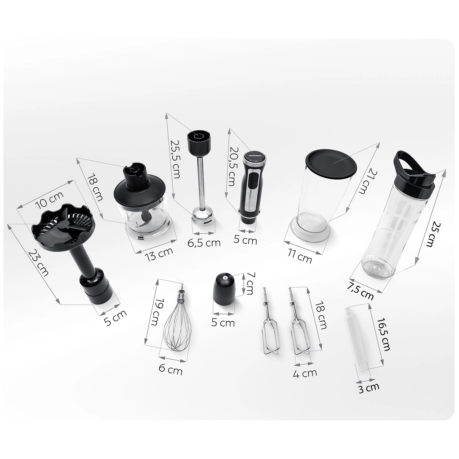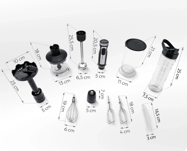 Merülő keverés, aprítás, habverés, keverés/gyúrás, pürésítés és smoothie készítés a 600 ml-es palackba (BPA-mentes). Egyetlen készülék a mindennapi kreatív főzéshez.