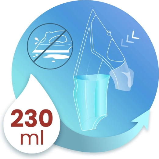 • 230 ml-es tartály és permetező – hosszabb vasalás ritkább utántöltéssel és célzott nedvesítéssel.