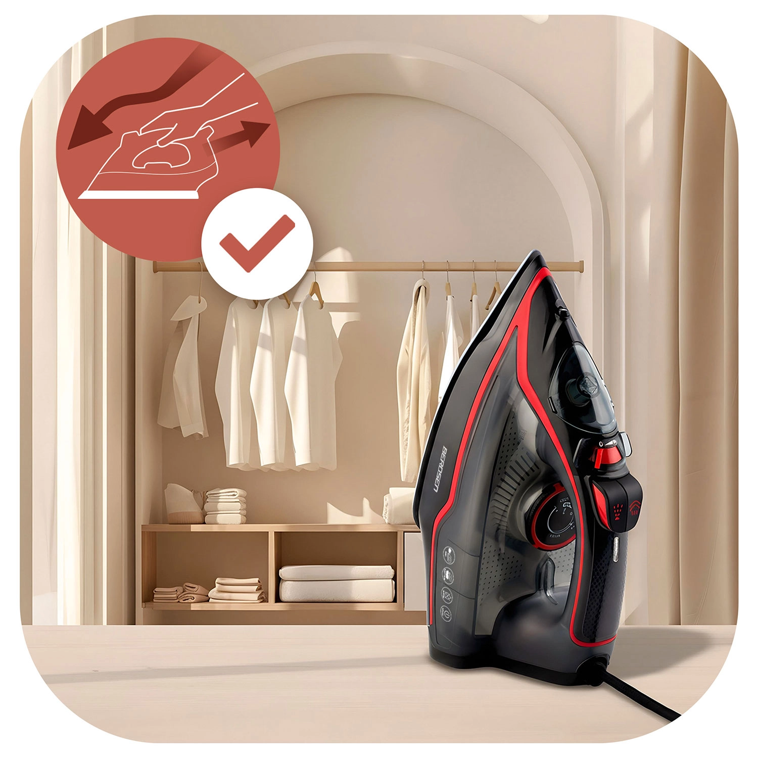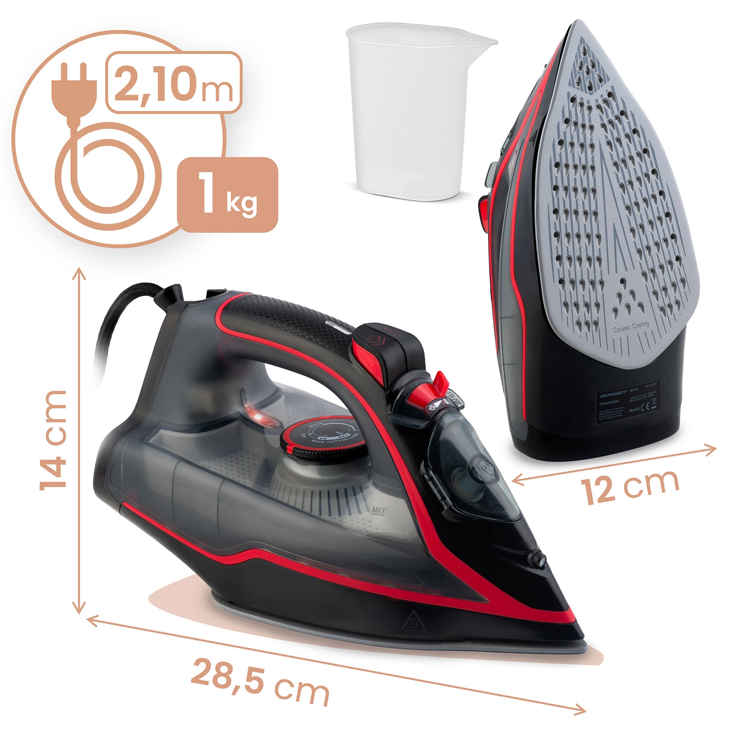 2600 W-os gőzölős vasaló Berdsen kerámia talppal és függőleges gőzöléssel