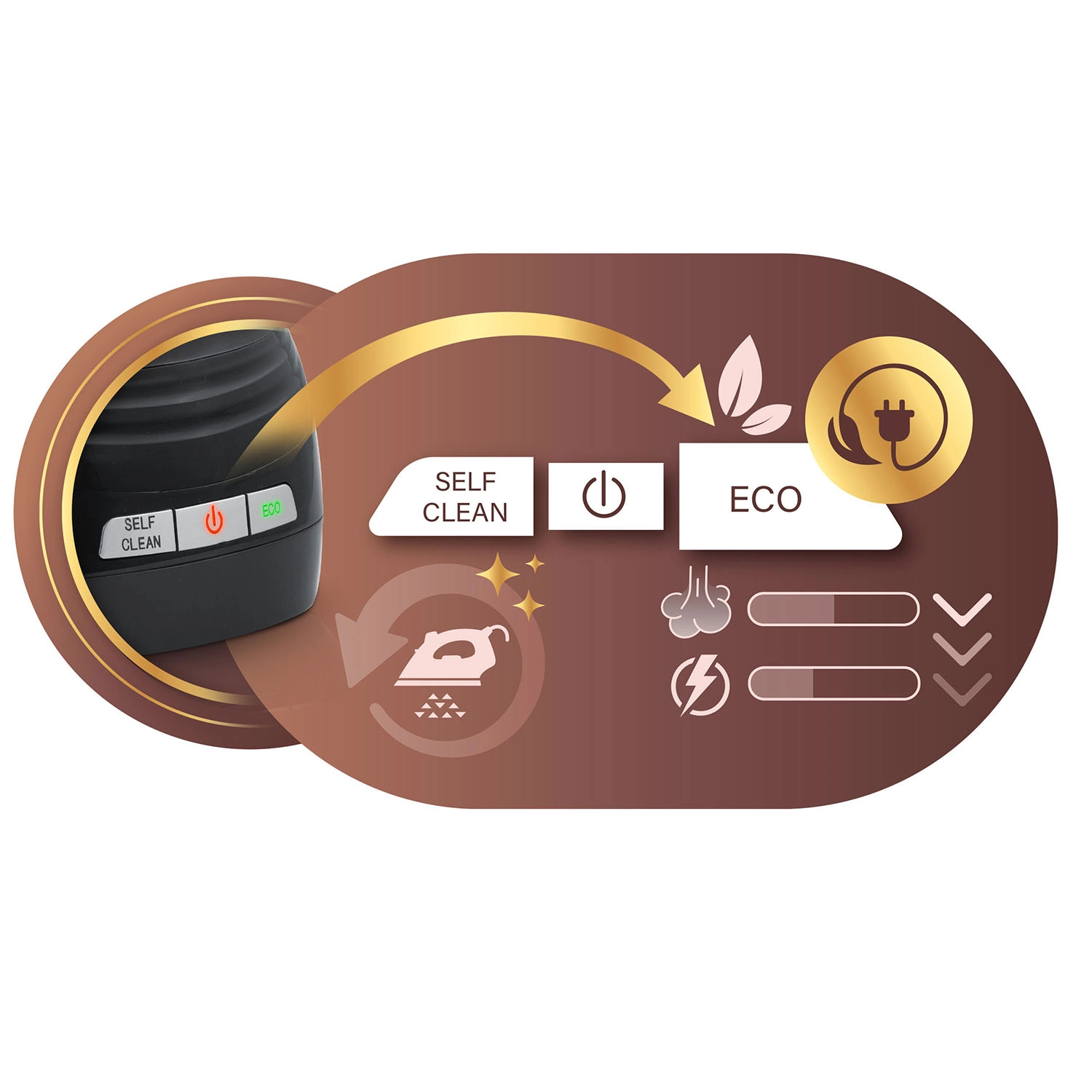 - Auto-off, ECO, Self Clean – biztonság, takarékosság és egyszerű karbantartás