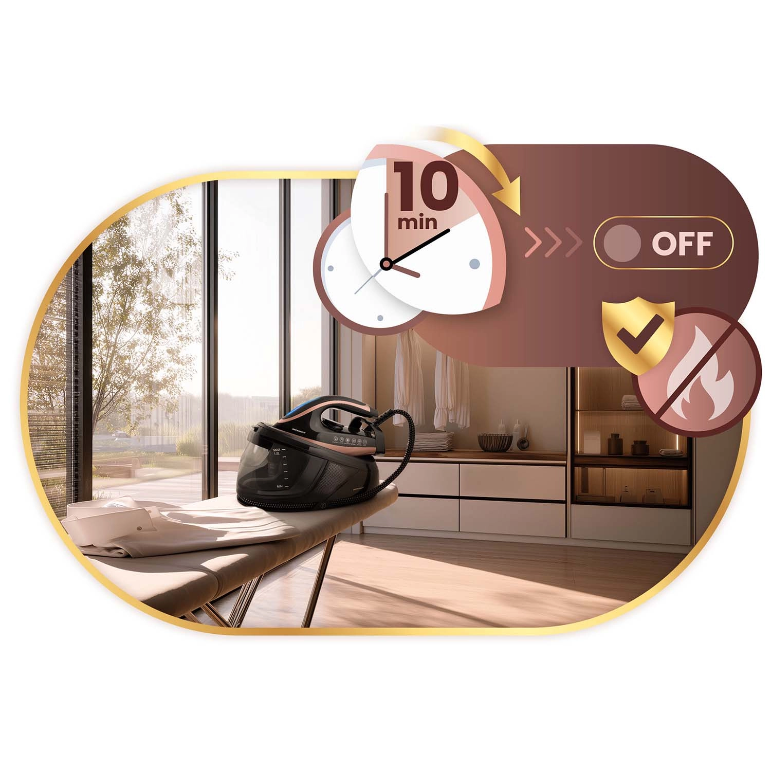 Élvezze a fokozatmentes hőmérséklet-szabályozást és a gőzszabályozást, a nagy ruhamennyiséghez való folyamatos gőz üzemmódot, valamint a függőleges gőzölés funkciót a ruhák gyors felfrissítéséhez. A Smart&Safe automatikus kikapcsolás 10 perc után növeli a biztonságot, a Self Clean meghosszabbítja az élettartamot, az ECO mód pedig csökkenti az energiafogyasztást kompromisszumok nélkül.