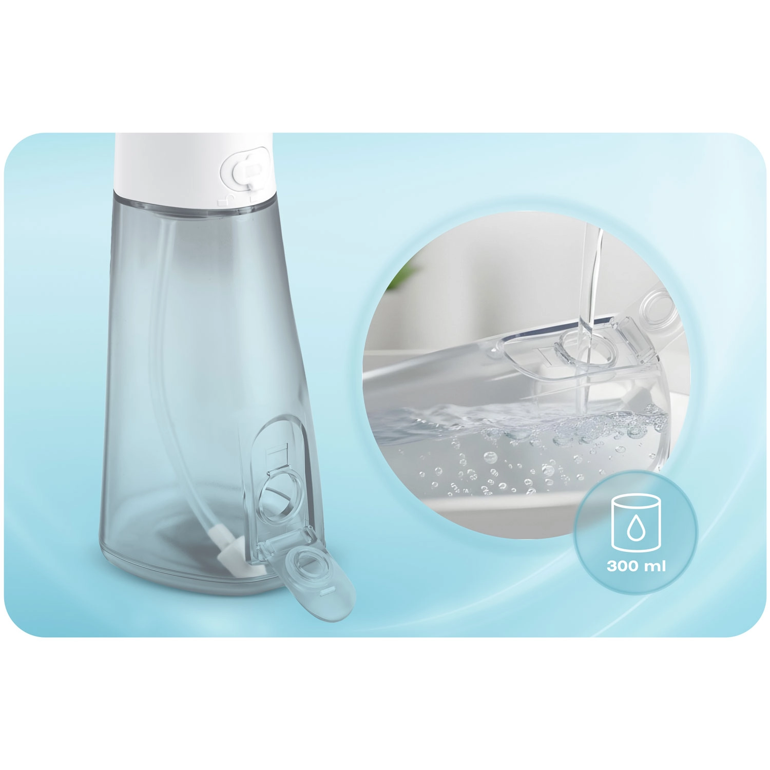 Kevesebb megszakítás és jobb elérés. A 300 ml-es kapacitás hosszabb öblítést tesz lehetővé víz utántöltése nélkül, a 360°-ban forgatható fúvóka pedig könnyen eléri a nehezen hozzáférhető helyeket.