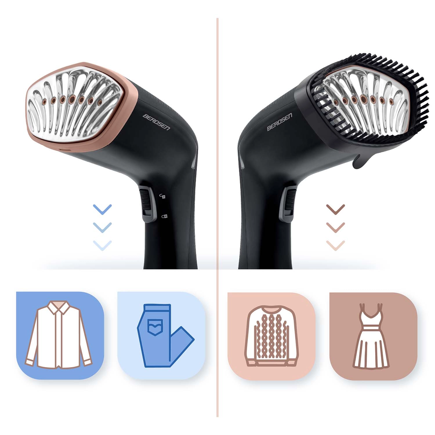 Erőteljes és stílusos kézi ruhagőzölő a BERDSEN-től 1600 W teljesítménnyel és 26 g/perc erős gőzlöketével: gyorsan kisimítja a gyűrődéseket, felfrissíti a szöveteket, és segít baktériumok és atkák eltávolításában vegyszerek nélkül. 230 ml-es, kivehető tartállyal rendelkezik, egygombos vezérléssel egyszerűen használható, a csomagban pedig kefés feltétet és töltőcsőrös tartozékot is találsz a kényelmes vízfeltöltéshez.