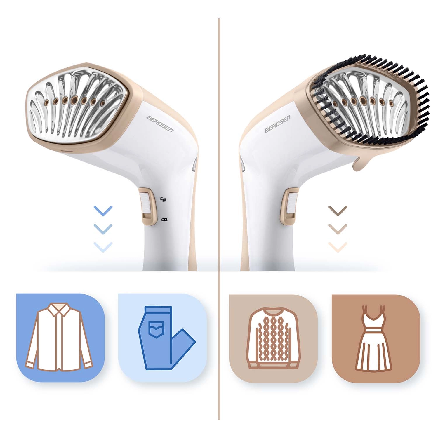 Felejtse el a hosszas vasalódeszka-nyitogatást és a várakozást, míg a vasaló felmelegszik. A BERDSEN kézi gőzölő vállfán, közvetlenül a ruhán simítja ki a gyűrődéseket, felfrissíti a zakókat, ingeket és ruhákat, és a 26 g/perc erőteljes gőzlökettel a makacsabb gyűrődésekkel is megbirkózik. A kivehető 230 ml-es tartály hosszabb gőzölést és kényelmes víz-utántöltést biztosít.