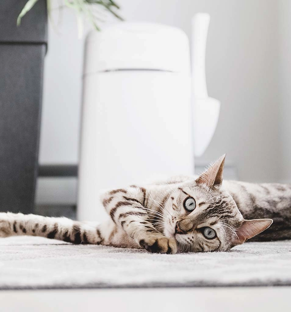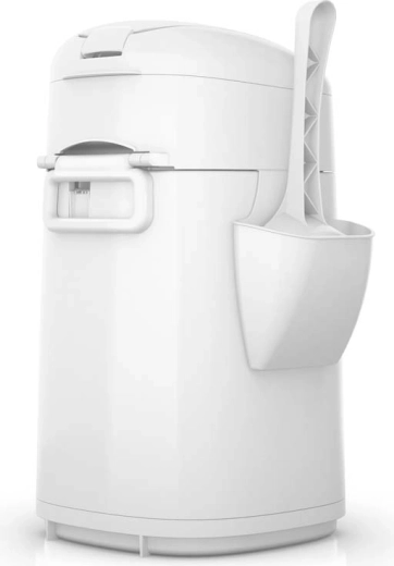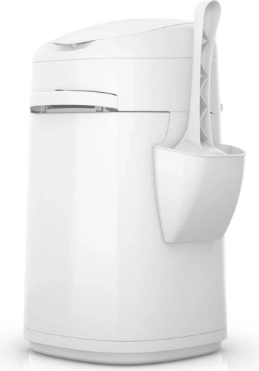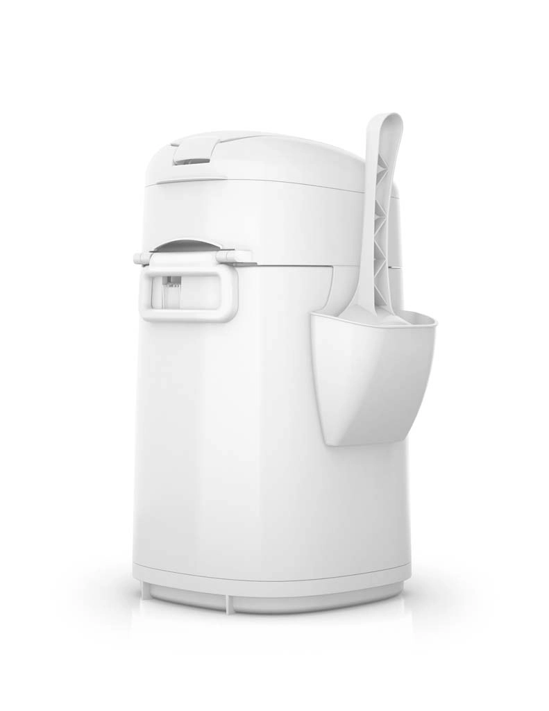 A praktikus részletek megkönnyítik a mindennapi használatot: levehető fedél az egyszerű tisztításhoz, beépített biztonsági vágó a fólia elválasztásához és kényelmes fogantyú a hordozáshoz. Nagy kapacitásának köszönhetően egy macskás háztartásban a betét akár 2 hónapig is kitart. A tároló dizájnja 4 stílusos huzattal (külön kaphatók) személyre szabható, így bármilyen enteriőrbe illeszkedik.