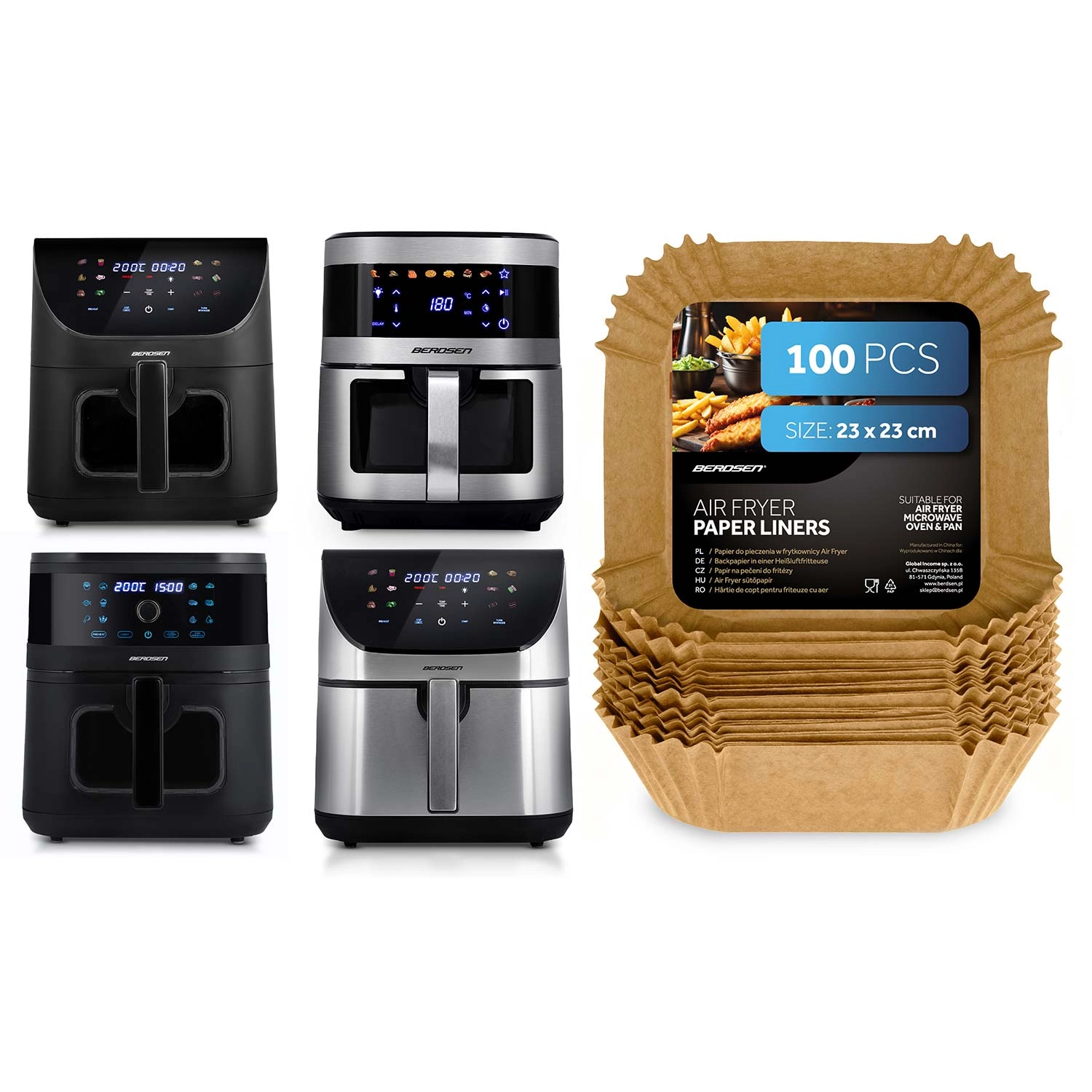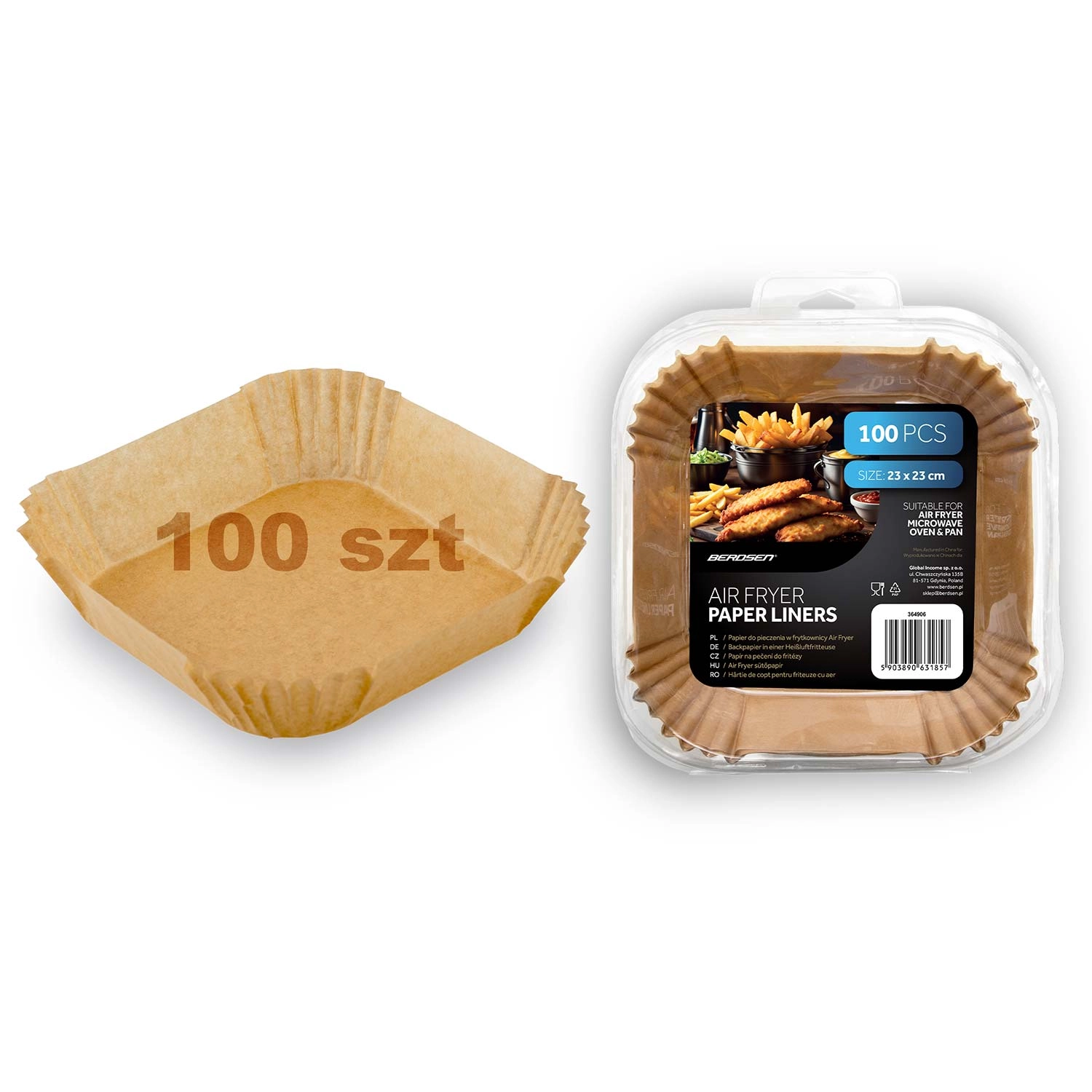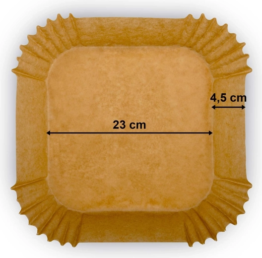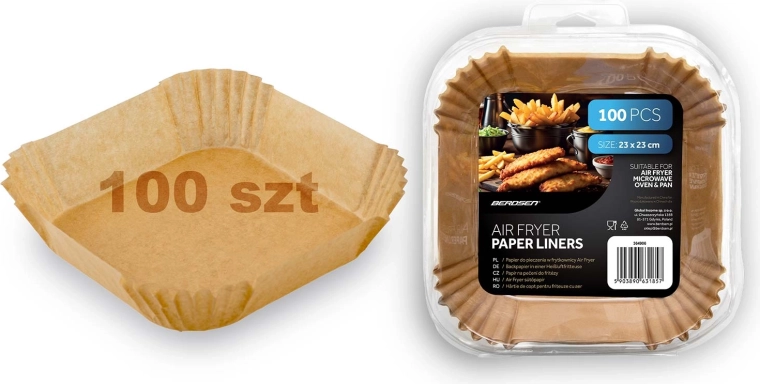 A praktikus papír betétek forrólevegős sütőhöz sütőpapírból készülnek, és négyzet alakúra formázottak magas, hajtogatott peremmel (kb. 4,5 cm). Segítségükkel az étel kevésbé tapad le, könnyebb kivenni, és főzés után a betét egyszerűen kidobható. A 23 × 23 cm méret számos kosárhoz és tepsihez passzol, továbbá alkalmas mikrohullámú sütőbe és sütőbe is.