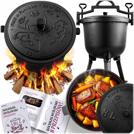 Fedezze fel a szabadtéri főzés hagyományos ízét egy stabil és tartós, 8 literes öntöttvas üsttel. A vastag falaknak és az egyenletes hőelosztásnak köszönhetően pörköltet, sült húsokat vagy bigost készíthet mély, odakapás nélküli ízzel. Az üst szellőzőnyílásos fedővel, levehető lábakkal és masszív fogantyúval rendelkezik, hogy tűz fölé akaszthassa. A csomagban ráadásul üstbe való recepteket is talál a könnyű kezdéshez.