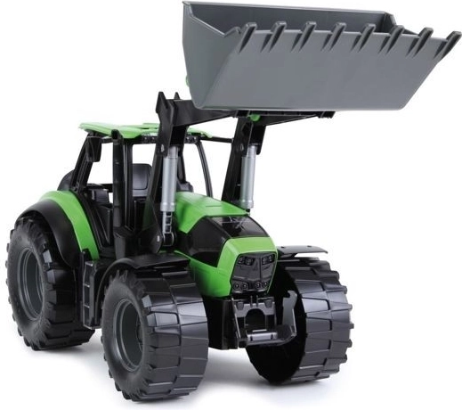 Robusztus gyerek traktor elülső kanállal, DEUTZ FAHR Agrotron dizájnban, élethű kidolgozással 1:15 méretarányban. Funkcionális első kanállal rendelkezik, minőségi műanyagból készült, és benti és kinti játékra egyaránt alkalmas. Hossza 45 cm.
